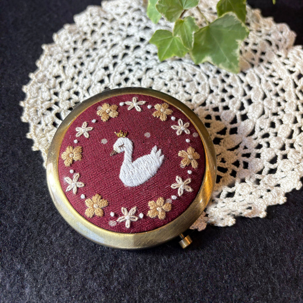 優雅で可愛い白鳥をモチーフにしたコンパクトミラー。